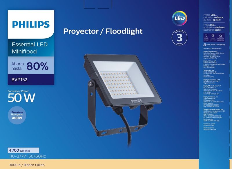Projetor Essential LED Flood G3, 4700 lúmens, 50W, 3000K, 120-277V, 30.000 horas, IP65. Garantia de 3 anos.
